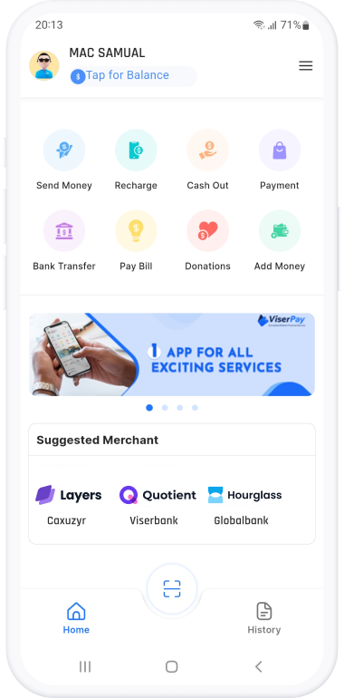 ViserPay impresses with its innovative features like QR code money transfers and an effortless cashout system. The user-friendly interface makes managing finances a breeze.